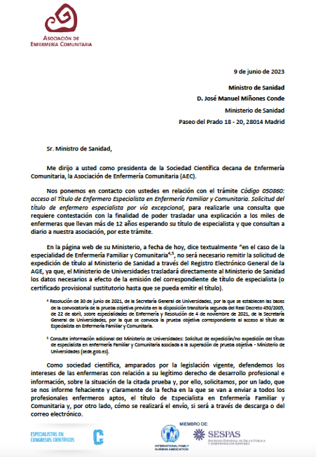 Ante el grado de incertidumbre y de desilusión que todo este proceso ha generado en el gran número de enfermeras que, una vez más, encuentran dificultades y demoras en relación con la expedición de este título.