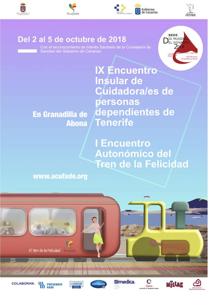 Del 2 al 5 de octubre ha tenido lugar en Granadilla de Abona, Tenerife, el IX Encuentro Insular de Cuidadoras de personas dependientes de Tenerife y I Encuentro Autonómico del Tren de la Felicidad, organizado por la Asociación de Cuidadores/as, Familiares y Amigos/as de Personas con Dependencia, Alzheimer y otras Demencias (ACUFADE) con la colaboración de la Asociación de Enfermería Comunitaria (AEC), representada por su Vocal en Canarias, Jesús Iván Hernández Valladares, el Ayuntamiento de Granadilla de Abona y la Gerencia del Servicio Canario de la Salud, representada por la dirección de la Zona Básica de Salud.