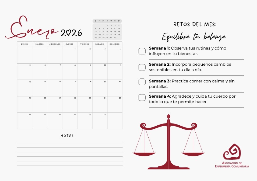 Con motivo del Día Internacional de la Enfermera Comunitaria, la AEC presentó en el pasado mes de noviembre el Calendario Salutogénico: CUIDANDO DONDE LA VIDA SUCEDE, una iniciativa clave para promover estilos de vida saludables a nivel global, integrando la perspectiva del modelo de activos.